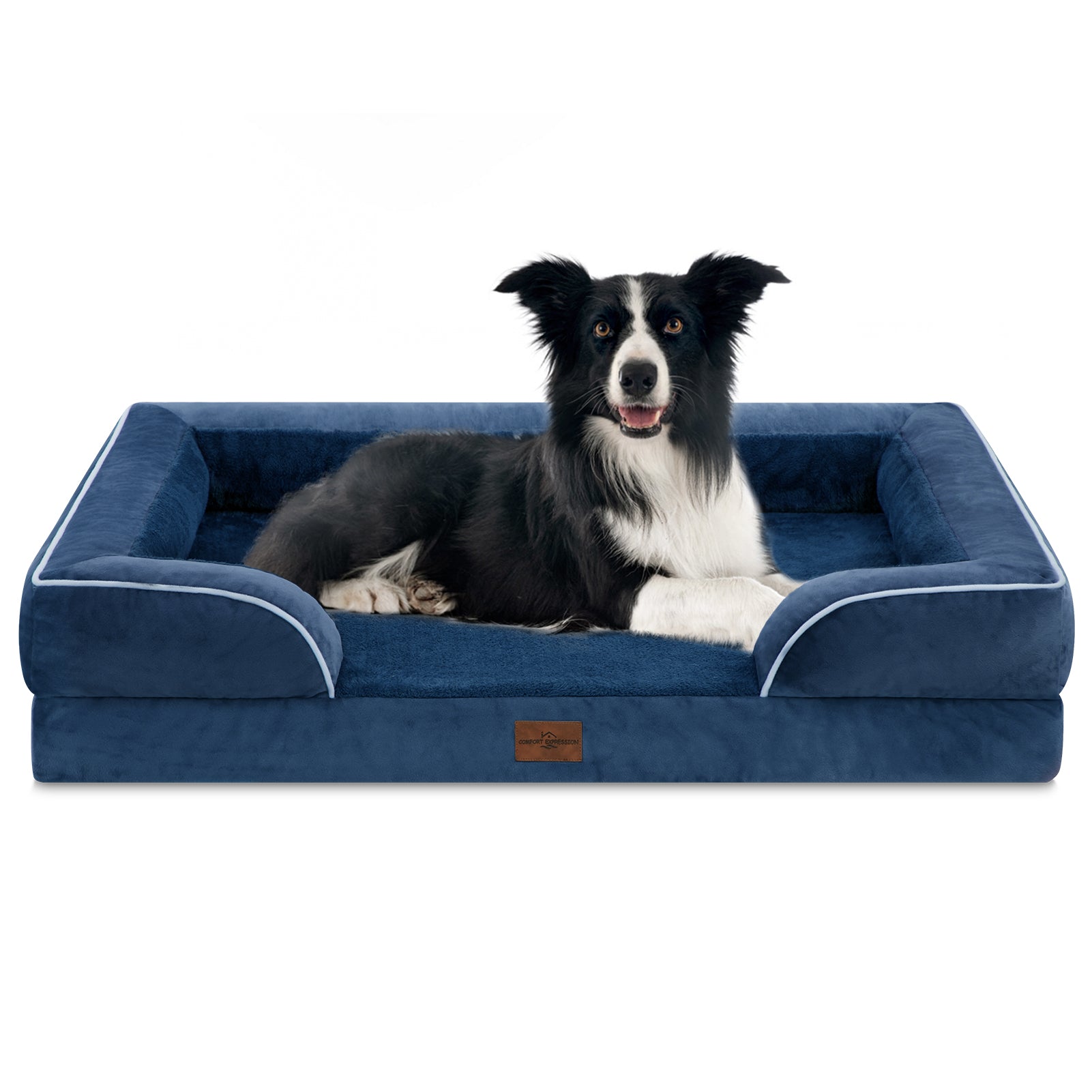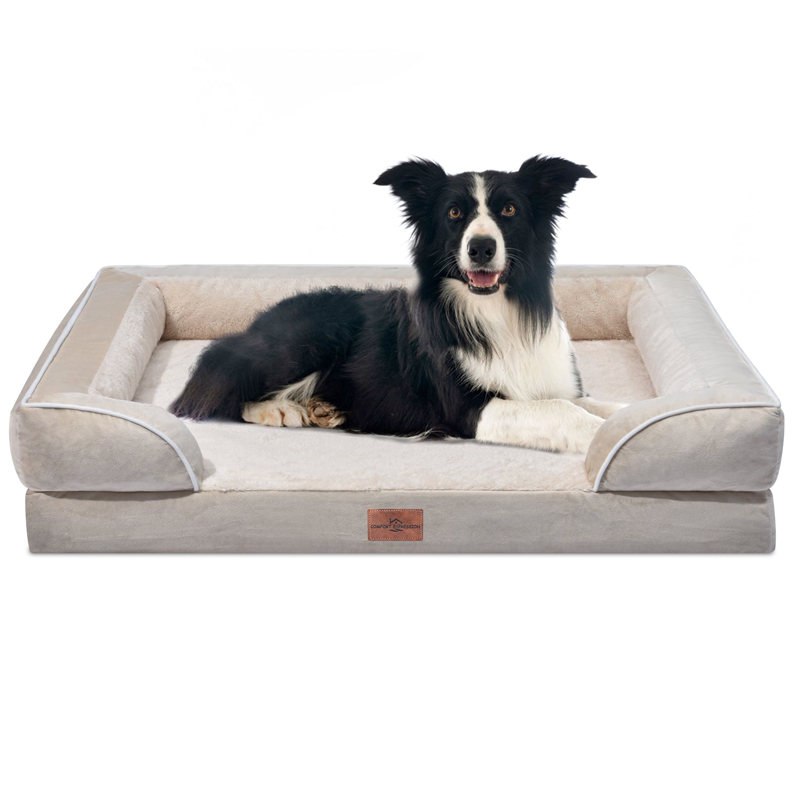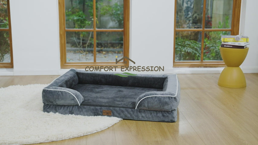 Comfort Expression Waterproof Orthopedic Foam Dog Beds for Extra Large Dogs Durable Dog Sofa Pet Bed Washable Removable Cover with Zipper and Bolster